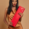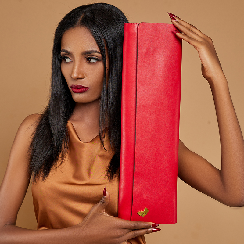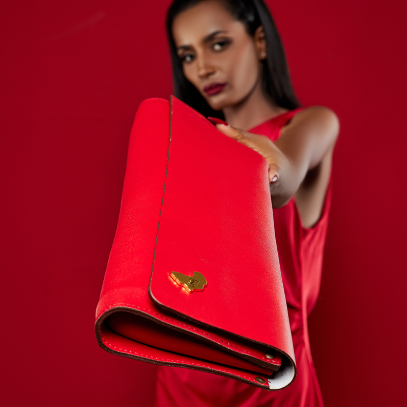 This elegant fold-over clutch is made to fit all your essentials. The clutch is made in Plain Red, Brown and Black patterned leather and measures; Length: 18 inches Height : 6 inches.